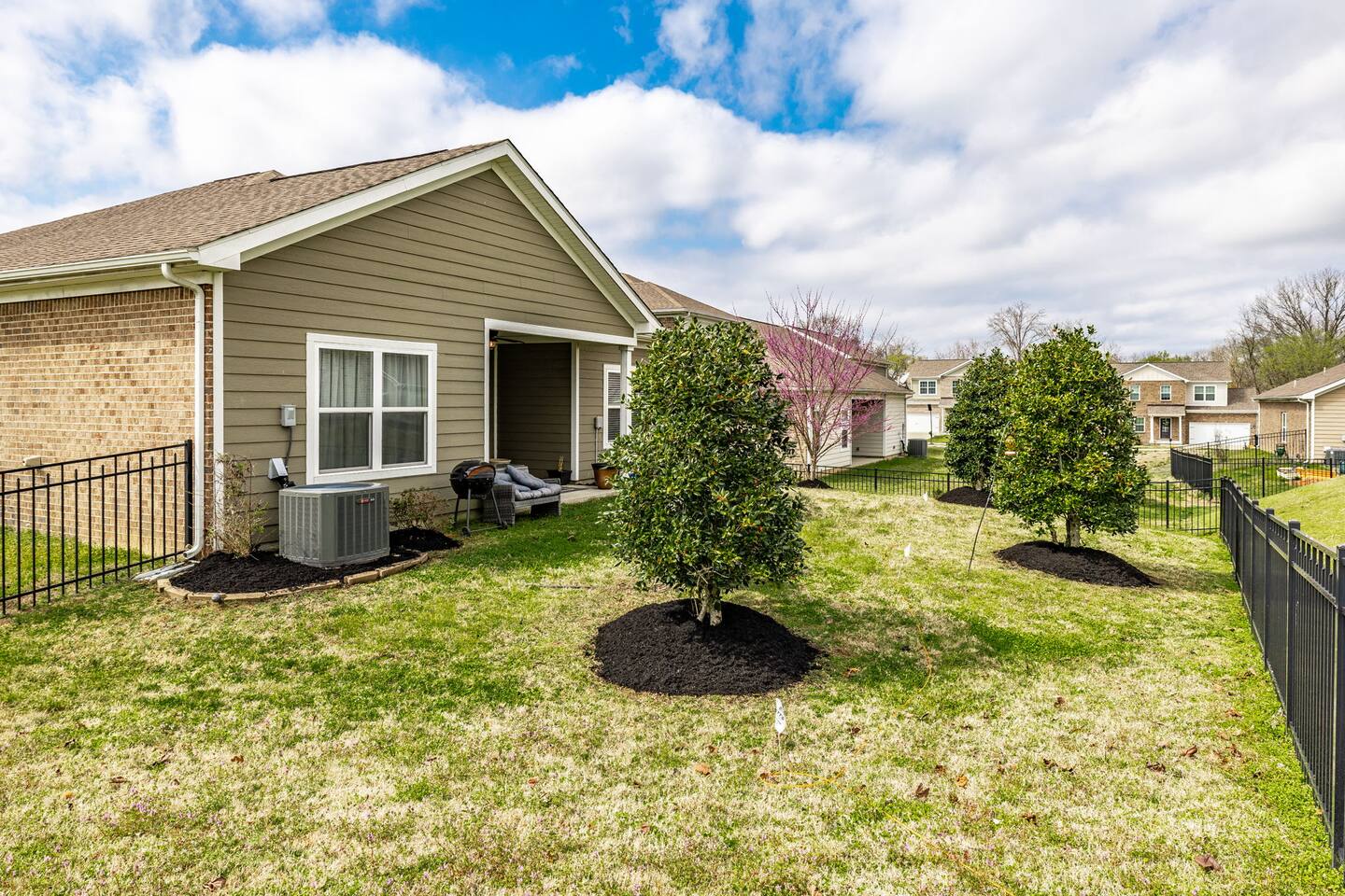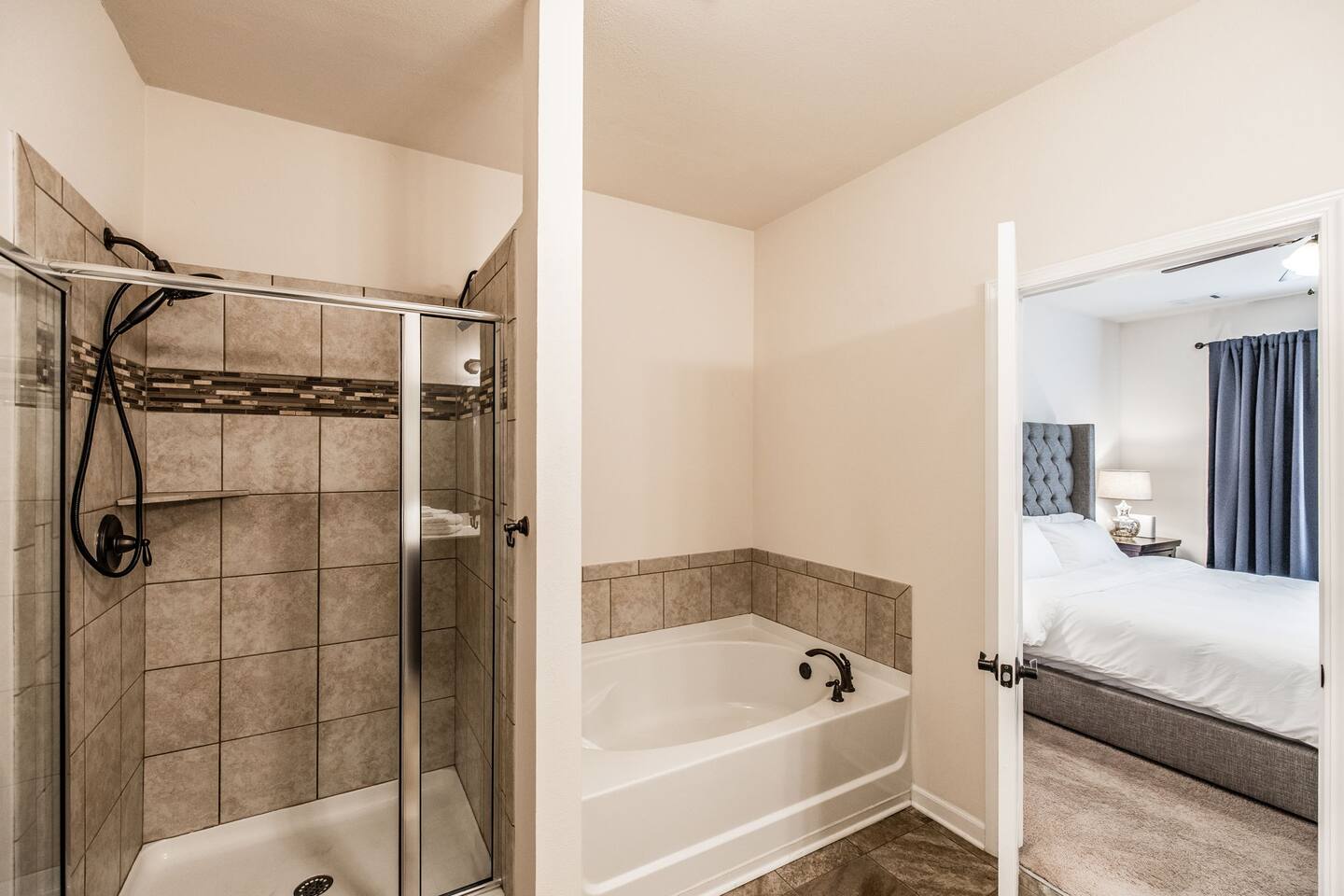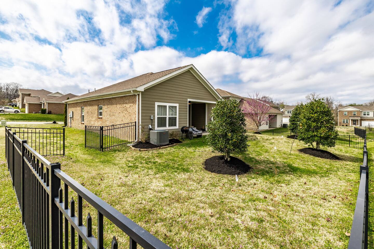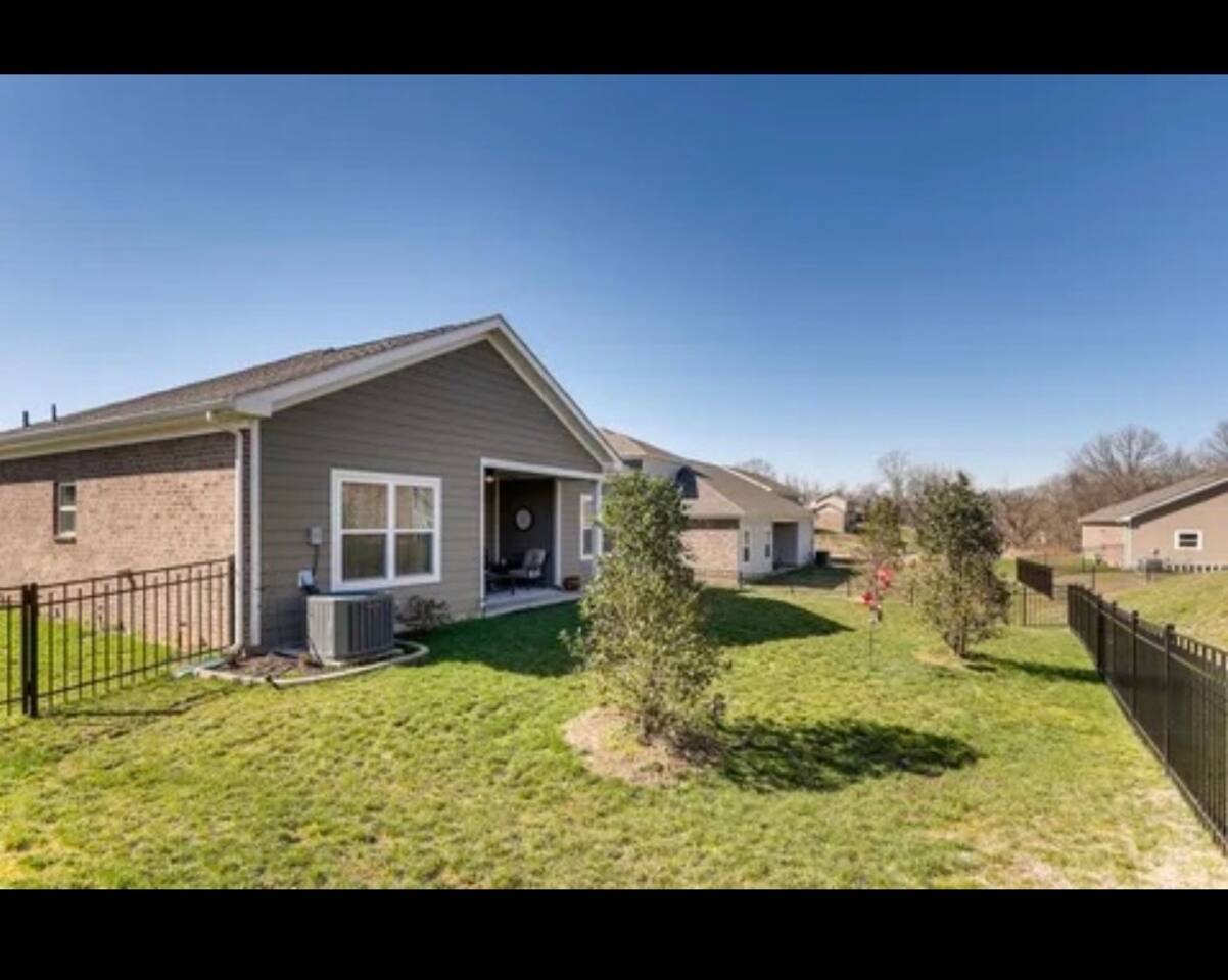 🛏 Sleeps 4 comfortably • King bed in the private primary suite • Queen bed in the second bedroom • Each bedroom has its own bathroom 🍳 Spacious kitchen for gathering Enjoy a large kitchen with island seating plus a separate dining room—perfect for meals, coffee, or planning the day’s adventures. 🛁 Relaxing primary suite The primary bathroom features a soaking tub and stand-alone shower for a spa-like retreat. 🌿 Private fenced backyard Great for enjoying morning coffee or relaxing outside after a day exploring Gallatin and nearby Nashville. 💻 Dedicated office space A third room is set up as a designated office with a desk and chair, perfect for remote work, planning your trip, or a quiet place to focus. 🚗 Parking Driveway parking for up to 2 vehicles. No trailers and no street parking permitted in the neighborhood. ✨ Easy access home Zero-entry design with no steps makes arrival and moving around the home simple and convenient. Whether you're visiting family, working nearby, or exploring the Gallatin area, this home offers a comfortable and peaceful place to stay.