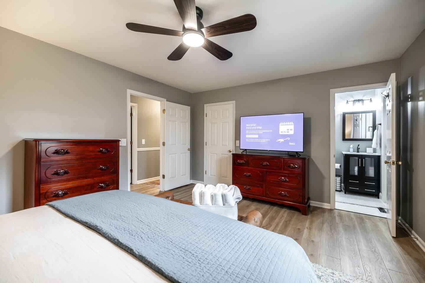 🏡 **The Space** Everything here is **fresh, bright, and new** — from the stylish finishes to the cozy furnishings and plush mattresses. **Bedrooms & Baths** * 🛏️ 1 King Suite with a **private ensuite bath** * 🛏️ 2 Queen Bedrooms, **each with a dedicated full bathroom just steps away** (not ensuite) All bedrooms feature **luxury linens, blackout curtains, and thoughtful touches** designed for restful sleep. **Living & Gathering Spaces** * Spacious family room with **plush seating** and a **65” QLED TV** for movie nights or game days * **Bonus room** perfect for remote work, reading, or quiet downtime * **Dining room with seating for 8**, ideal for shared meals or game nights * Fully stocked **kitchen with stainless appliances, cookware, and dinnerware** — perfect for everything from morning coffee to multi-course dinners **Practical Amenities** * **Washer & dryer** * **Highchair located in the hallway closet** * **Pack ’n Play stored in the primary bedroom closet** * **High-speed WiFi** * **Central HVAC + ceiling fans** * **Large yard and outdoor seating** for enjoying the peaceful rural view * **Parking for up to 4 vehicles** in the spacious driveway You’ll instantly feel at home in this **bright, modern space** that balances relaxation with functionality — the perfect backdrop for your Tennessee escape. 📍 **Location & Why You’ll Love It** Located in **Gallatin, TN**, just a **30-minute drive from downtown Nashville**, *The Gallatin Getaway* offers the **best of both worlds** — wide-open skies, peaceful surroundings, and easy access to Music City attractions. You’ll love: * Morning coffee on the patio while birds sing * Space for kids (and adults) to roam, play, and relax * Hosting cookouts or game nights surrounded by open country air * Exploring nearby towns like Hendersonville and Portland * Being close to local dining, marinas, and Old Hickory Lake — yet far enough to truly unwind --- ✨ **Your peaceful Middle Tennessee retreat awaits — come relax, recharge, and make lasting memories at The Gallatin Getaway.**